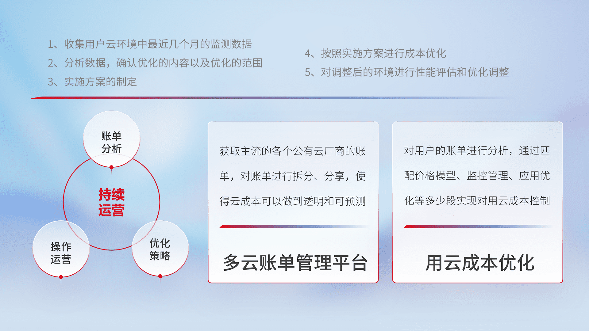 运用智能化工具分析云资源,,,,提供日常费用可视化工具,,自动账单拆分,,,成本优化云上费用,,,,降本增效。。。。